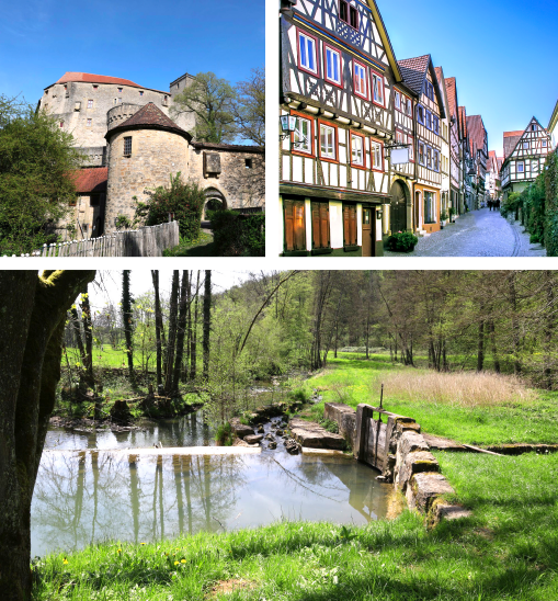 Bahnlinie führt der Radweg an den ruhig gelegenen Auerbacher See. Nach kurzem steilem Anstieg überquert man die Bundesstraße und fährt nach Unterschefflenz. Der Radwegbeschilderung Richtung Bad Friedrichshall folgen. Der romantische Schefflenzradweg ist mit dem Jagstradweg verbunden, den man bis zum Neckar folgt und die Brücke über den Neckar nach Bad Wimpfen benutzt. Wer will, schaut sich zuerst die mittelalterliche Stadt Bad Wimpfen an. Am Hotel Neues Tor vorbei schlängelt sich der Radweg zum Biergarten Waldschänke.